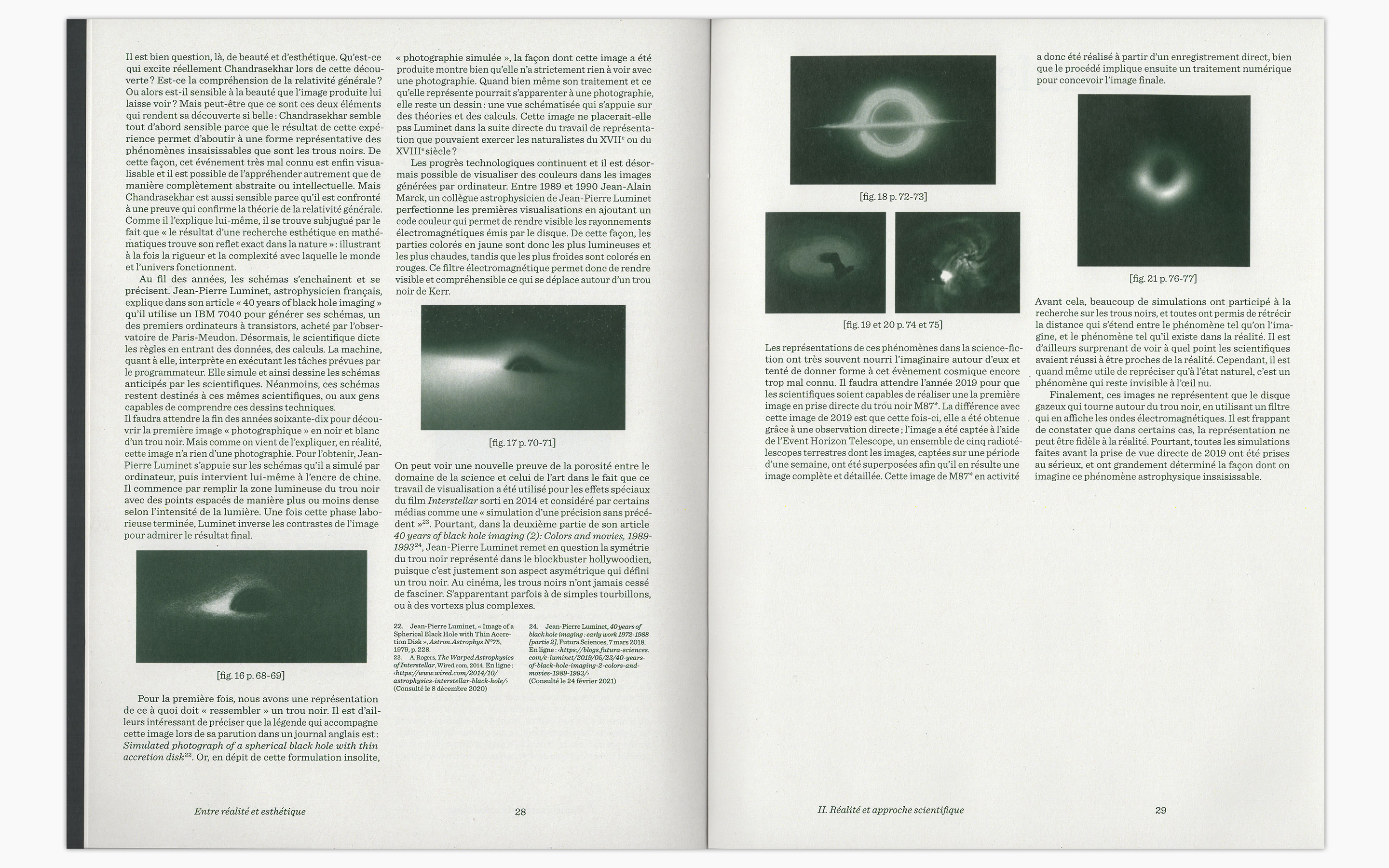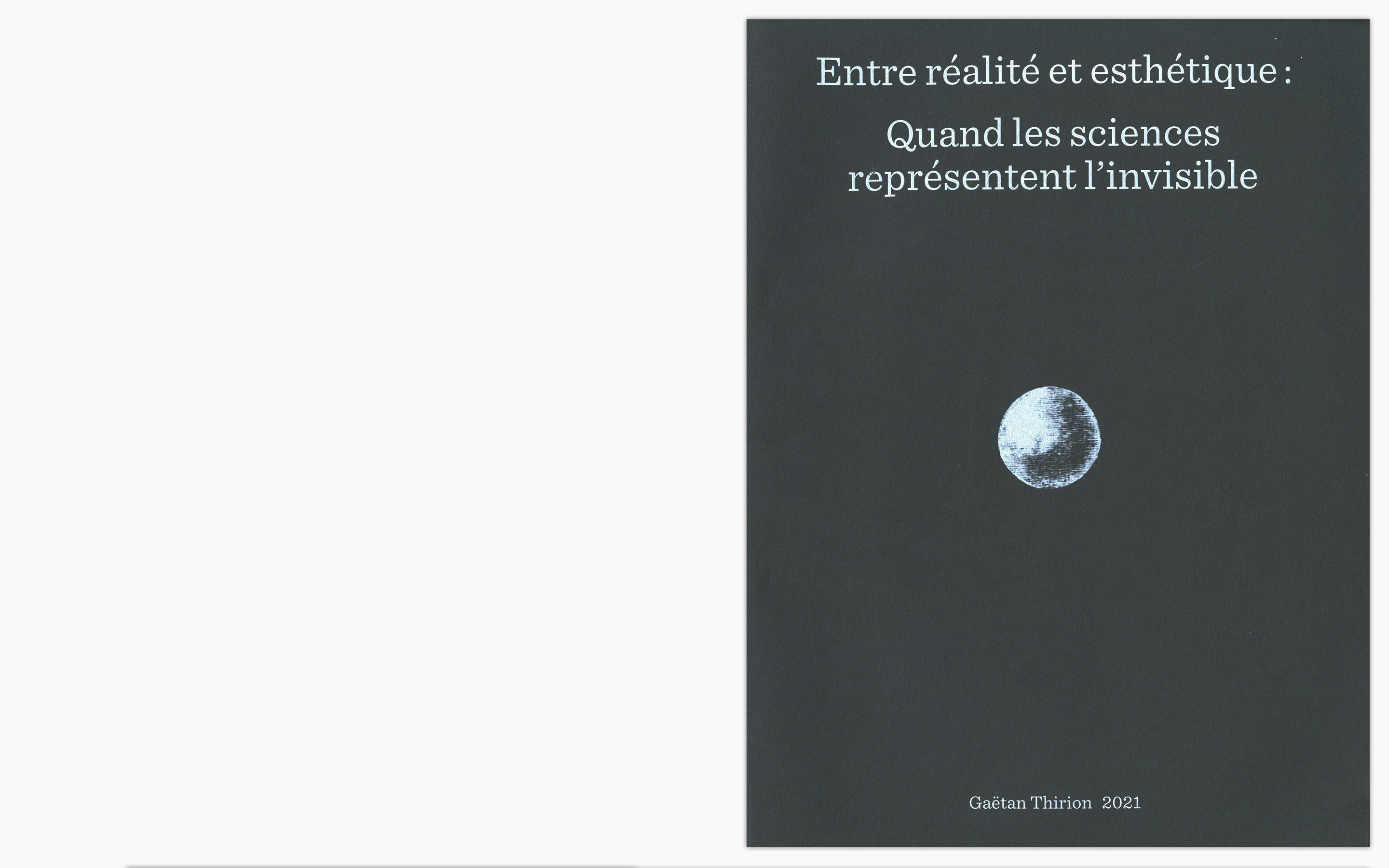 « Entre réalité et esthétique : Quand les sciences représentent l'invisible » est un travail de recherche et d'écriture réalisé lors de mon DNSEP à l'École National Supérieure des Beaux-Arts de Lyon. Ce mémoire questionne l'objectivité de l'imagerie scientifique qui tente de représenter le microscopique ou l'invisible, évoluant au fil des siècles et des nouvelles technologies d'observation et de représentation.